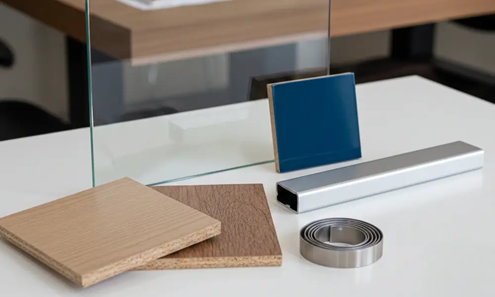 O vidro pode ser incolor, extra-clear, fumê ou reflecta, cada um com impacto diferente na estética e na visualização interna dos módulos. Já os perfis de alumínio garantem rigidez, acabamento preciso e maior durabilidade no uso diário.