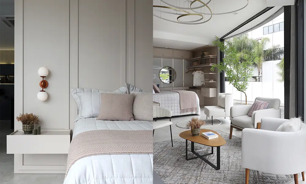 Os neutros aquecidos assumem posição central nessa transição. Tons como areia, fendi, taupe, bege amendoado e variações suaves de terracota substituem o branco absoluto como base predominante dos projetos. Essa mudança altera significativamente a percepção do espaço: ambientes passam a transmitir acolhimento imediato sem perder elegância. O efeito é sutil, mas estrutural, pois há mais profundidade visual e uma sensação térmica mais confortável, especialmente quando combinados à iluminação indireta e a texturas naturais.